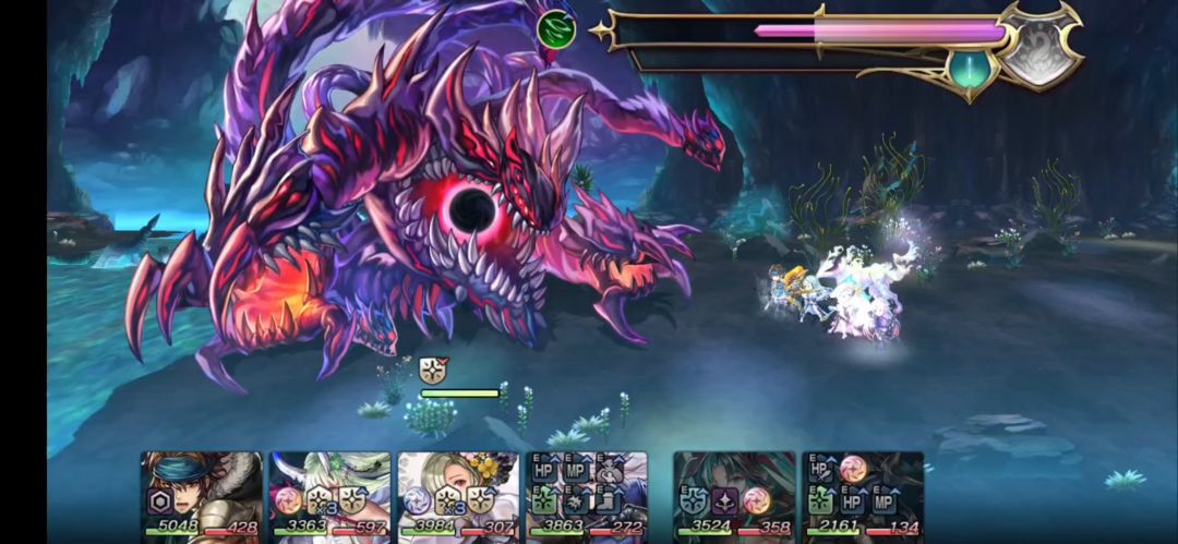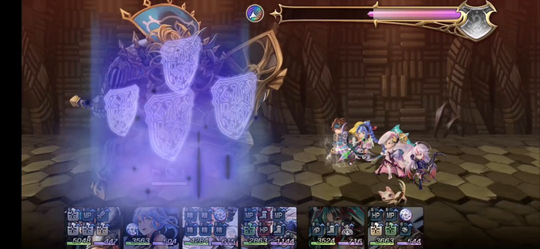 在第一回合时,我们切换赛温至后排,换上墨染协助转换BOSS的弱点,这思路并不影响美露迪展极风