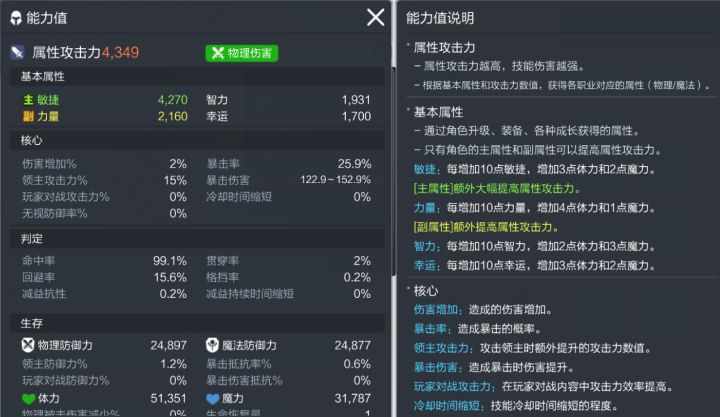 基础属性有四项,分别为力量,敏捷,智力,幸运(和大部分冒险的RPG游戏一样的词条,话说为什么拉幸运不提高掉宝率呀)。四个属性的提升都可以提升自身的体力和魔力,但是不同的职业会有不同的主属性和副属性。主属性大幅度提高属性攻击力,副属性小幅度提高属性攻击力,其他两个属性则不会对属性攻击力有影响。以神射手为例,主属性为敏捷,副属性为力量。所以养成神射手就应该拉敏捷为主,力量为辅。
