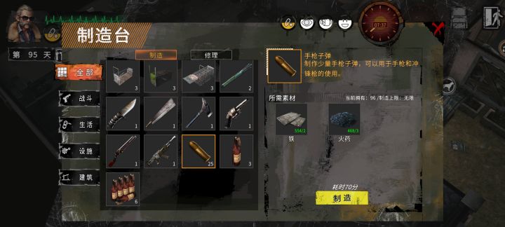 这次游玩还是比较顺利的,前期医院两本书,中期警局工厂有针有红牛,贵重品出的特别多,很早就开始扫荡商人了,这次侧重火药少换了40个钢,没想到钢存量也能上200。最后一波商人之后基础资源如图。不过狗子还只有5级接近6级😂
