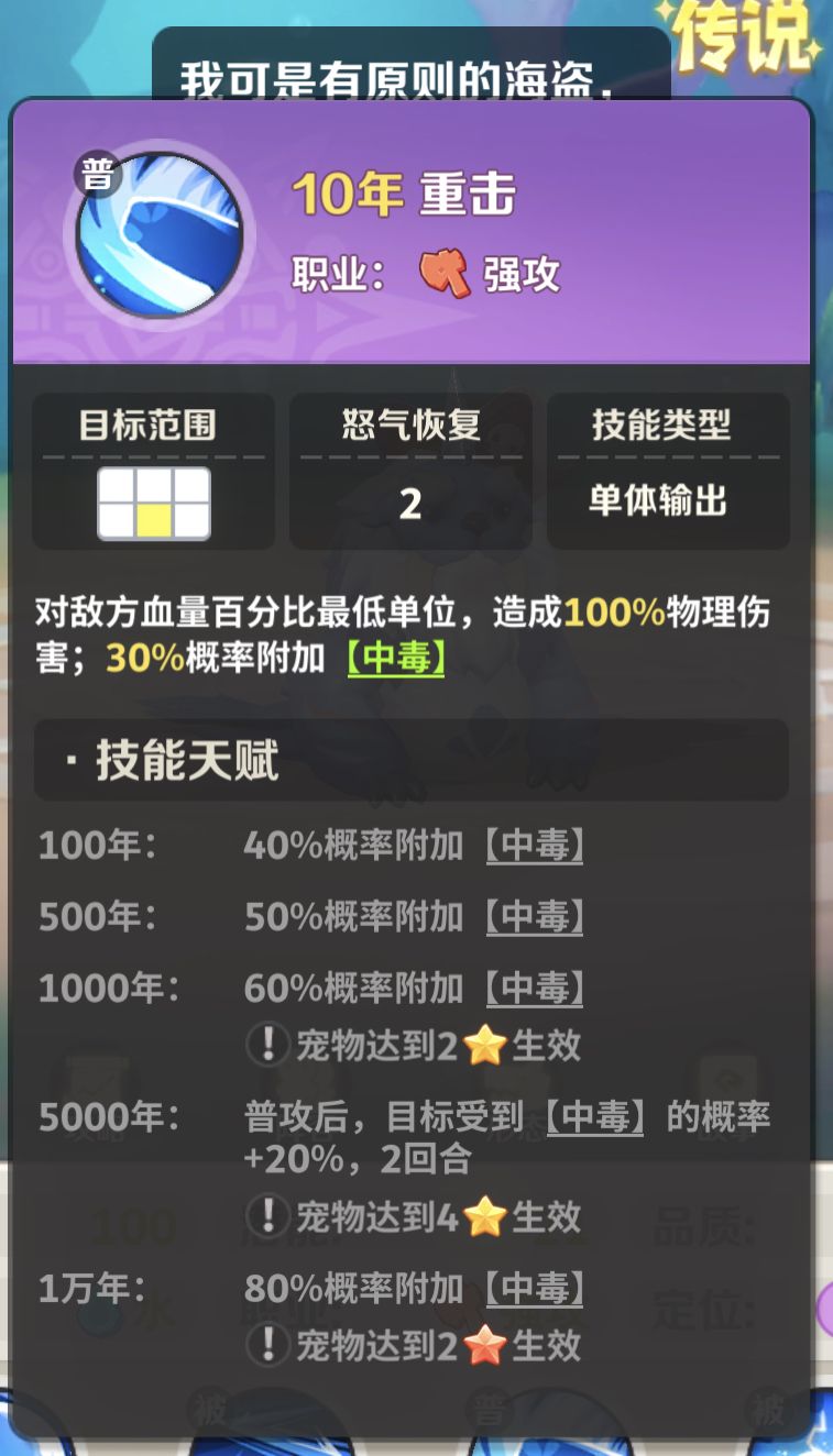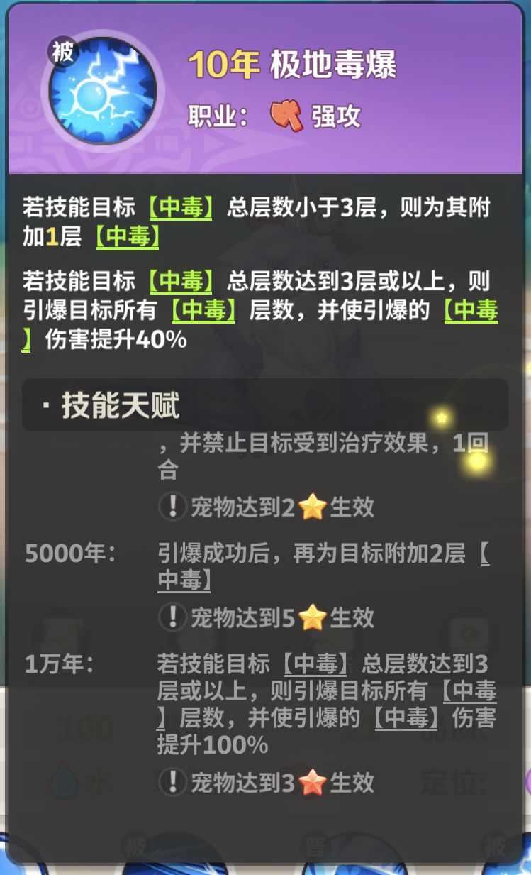 【特点】:水系新晋强攻宠,提前引爆敌方「中毒」层数,快速使敌方阵容减员。
