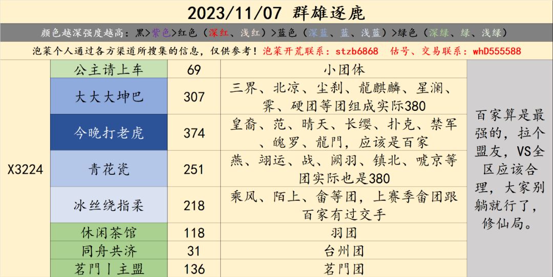 注:本文情报主要来源于部分相关知情人士,信息涉及面广,同盟和人数繁多,难免会有疏漏,欢迎各位主公指正和补充,同时感谢各路辛勤的记录者、史官们!