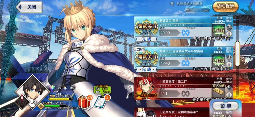 活动礼装一个没掉(非洲人泪目Ծ‸Ծ),不过要是5加成刷本就没那么爽快了(难受Ծ‸Ծ)