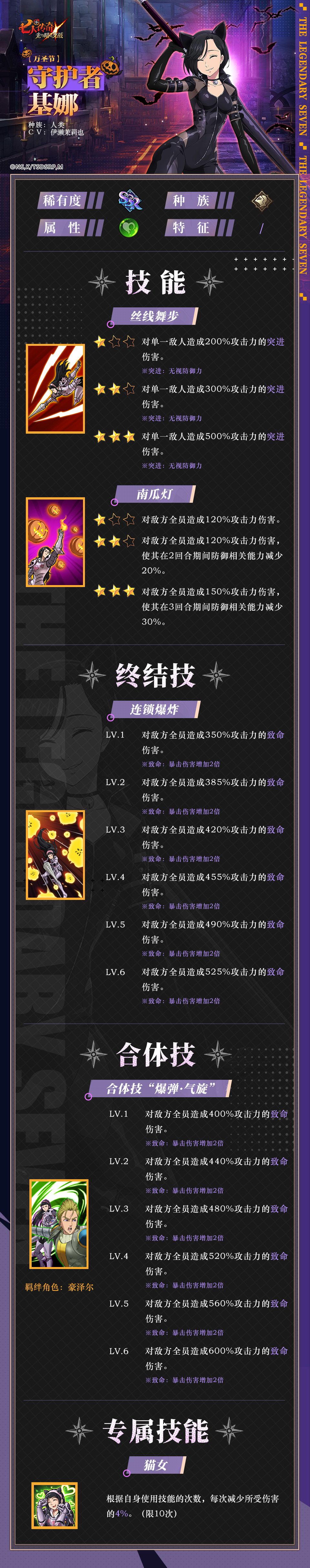 ☛【万圣节】守护者 基娜通过无视敌方防御的冲刺伤害技能,以及能降低所有敌人的防御相关能力的减益攻击技能,拥有了能有效针对高防御力的敌人的能力。