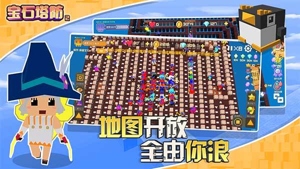 《宝石塔防2》是地图极其开放和自由的一款合成塔防游戏,通过不断的规划宝石塔摆放位置以阻挡怪物行进路线,进而抵御一波又一波的怪物进攻,成功守卫堡垒即为通关。