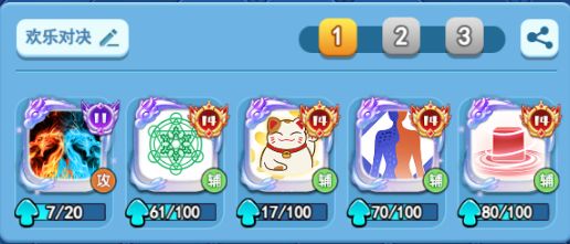阵容我们选择:炎龙+支援+招财+魔形+进化,这套阵容可以说是炎龙最理想的搭配,因为炎龙的技能为己方骰子合成时触发技能特效来增肌自己的层数。