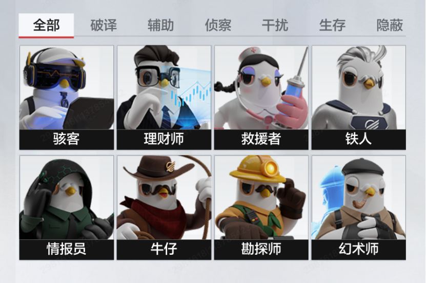 在目前测试中开放了8个职业,按照职业特性具体可以细分为【破译/干扰/侦查/救援】这四个方面。