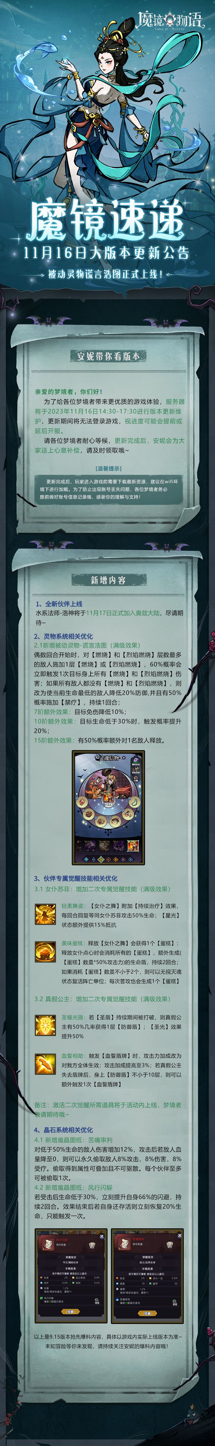 温馨提示:更新完成后,梦境者进入游戏前需要下载最新资源,建议在wifi环境下进行加载。为了防止出现账号遗忘问题,各位梦境者务必提前做好账号信息记录哦,感谢你的理解与支持!