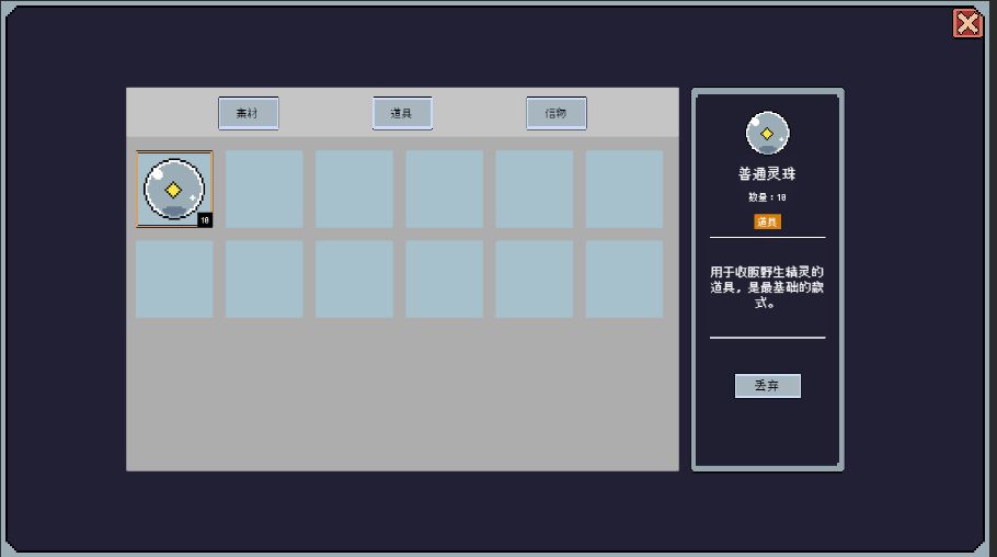 物品背包有容量限制,当物品已满时无法拾取新的物品。点击物品详情栏下方的“丢弃”按钮,可以丢弃该物品。