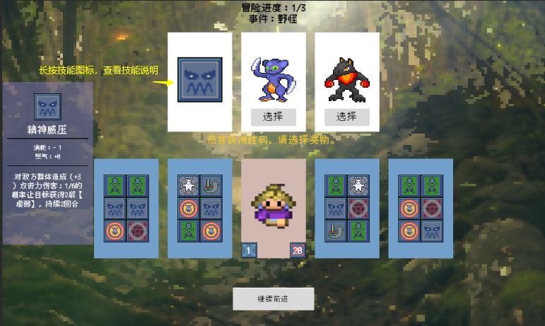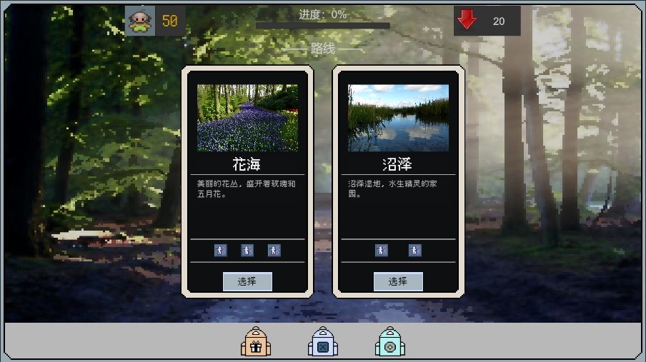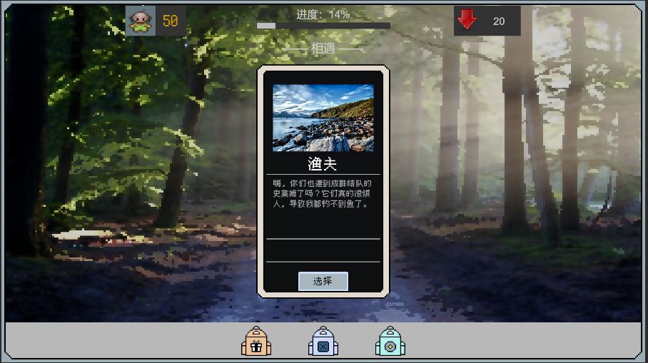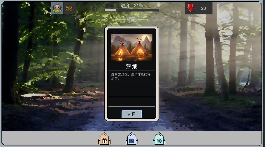 在冒险旅途中会经历各种事件,选择不同的事件会产生不同的效果。