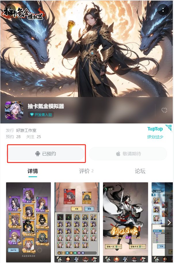预约并打分评价《抽卡氪金模拟器》,并在该帖内发送评价区评论后截图,如:以下示例