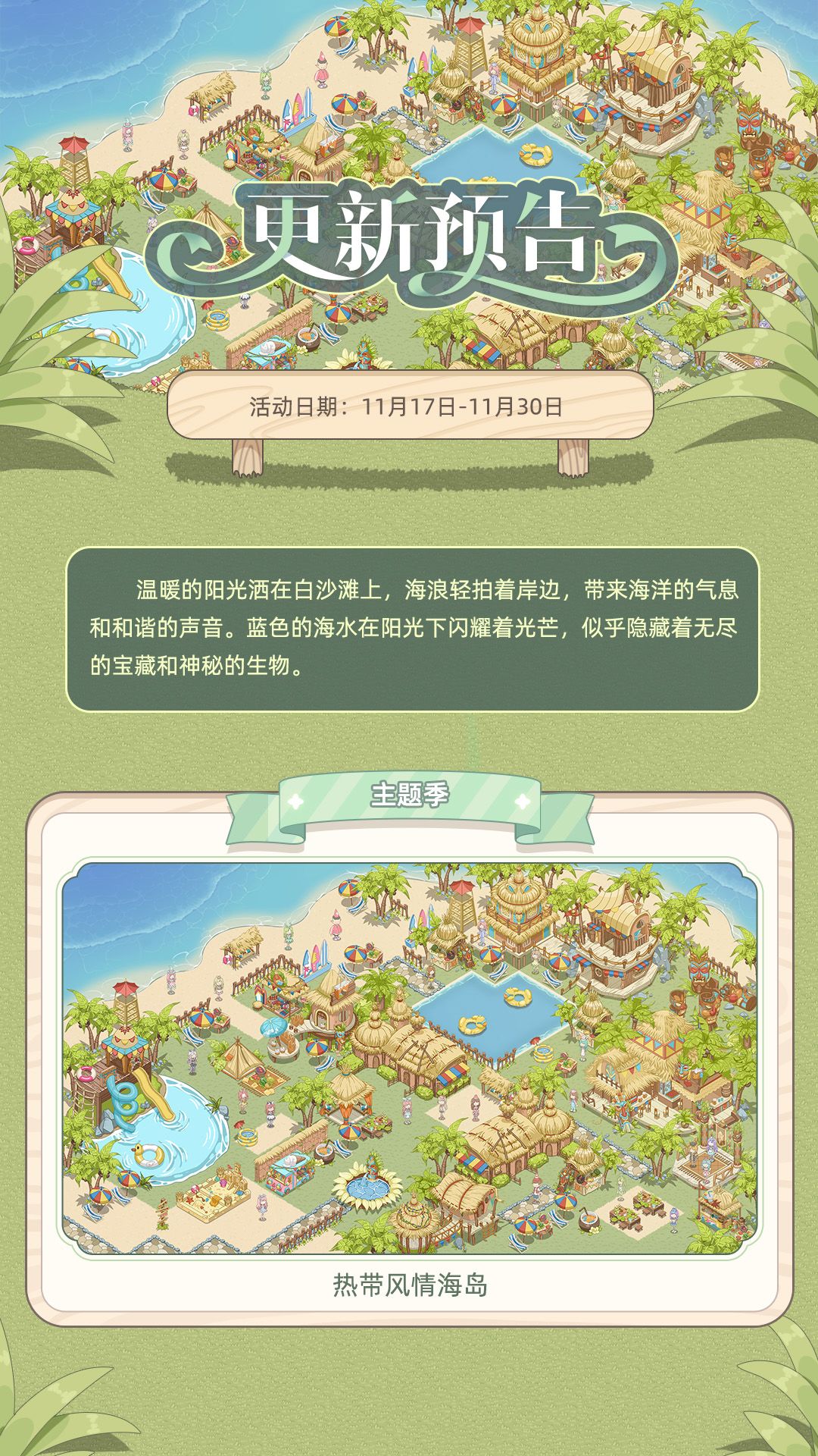 亲爱的城主大大们上新预告来啦,新主题季《热带风情海岛》即将登场!