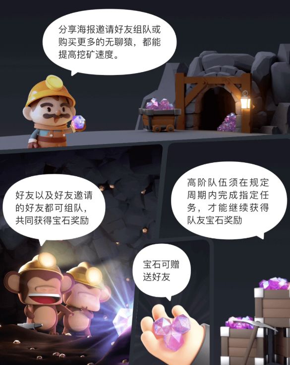 所谓被附赠的“7只猴子”可以在APP中用于挖掘宝石,买更多猴子还能提升挖掘效率。