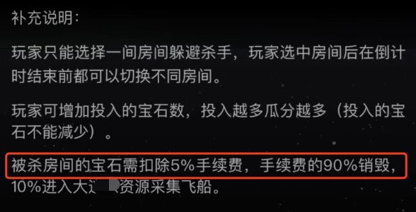 接着天亮了,剩下7个房间玩家存活下来,然后共同瓜分被杀房间玩家携带的所有「宝石」。