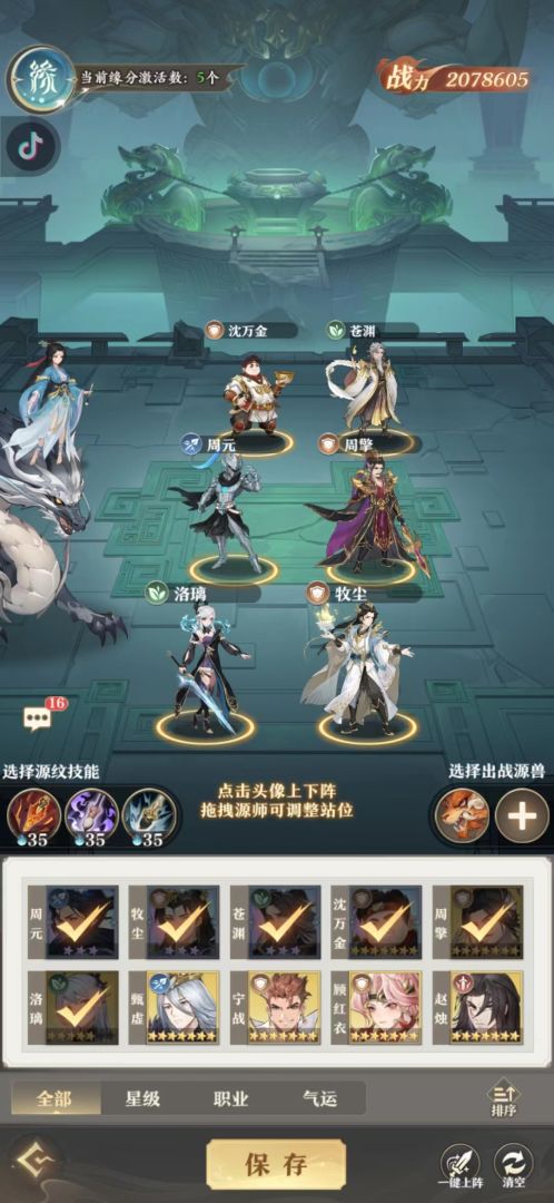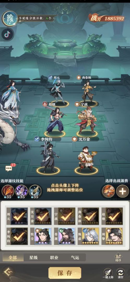 在阵营招募没出来前,不要去玩苏幼微跟武瑶,一星级上不去,二废钱,每天心愿搞搞武煌跟武瑶就行了。我这一套,虽然牺牲了萧炎15%的增伤跟10%最终伤害,而武煌的源分虽然并不是直接增伤,但也给萧炎+40%暴击率,并加强了周元跟武煌20%暴击伤害。这样做的好处就是用高额的暴击率弥补萧炎缺少的伤害,再配上这个源兵。再算武煌补输出。