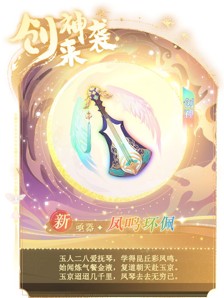 1、新增创神资质亟器:凤鸣环佩,集齐180个碎片可合成