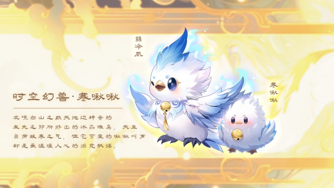 1、新增时空幻兽:寒啾啾,在战斗中通过时空之临同时召唤出时空幻兽寒啾啾助战,寒啾啾会随着等级出现外貌变化