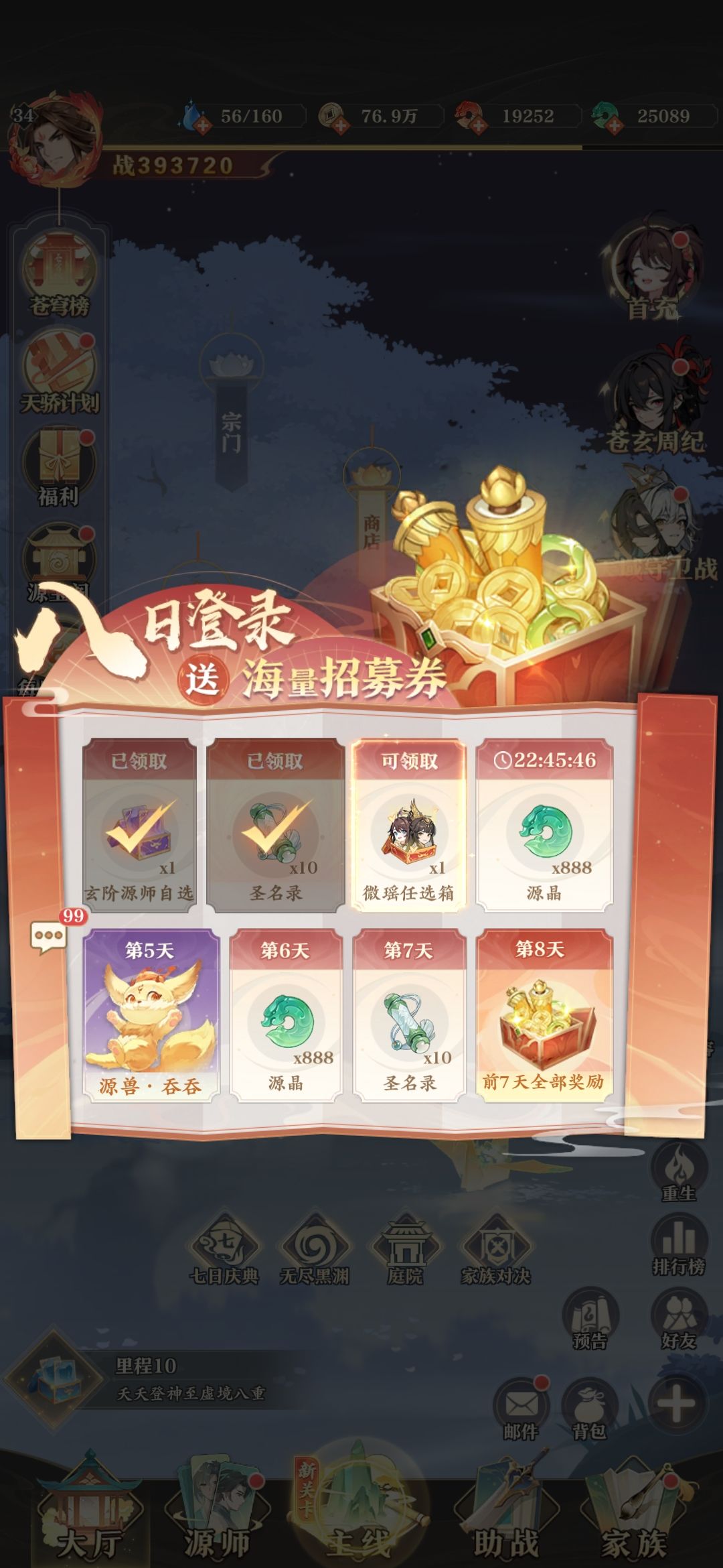 抽完升星-群星之力-战功殿升战力一条龙,圣龙积分如果过400记得把积分奖励领了,周元升到天品。