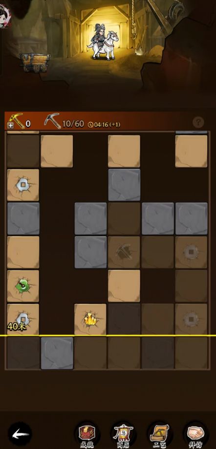 9) 黄色为深度线,始终处于最底一行上面,矿洞深度只能靠挖掘深入,无法手动拖动。