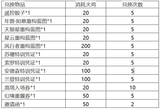 活动内容:活动期间,通过作战任务、签到、大富翁、消费回馈、幸运转盘、限时折扣商店购买等活动获取活动道具“火鸡”,消耗“火鸡”兑换奖励。