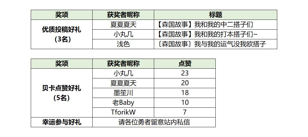 感谢各位勇者的踊跃分享,本次森国故事征集活动圆满结束,评选结果已出炉!