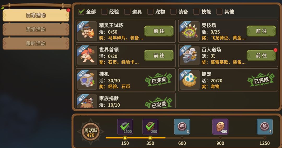 精灵王等活动对于平民玩家来说也是重要的经验来源。这些活动不仅容易完成,而且可以获得大量经验。精灵王和道场能打多高打多高,一转给的黑猪是道场+逆境+精灵王前期必备神宠,可以考虑洗成优秀以上。精灵王经验高层会多一点不会多太多,只为了完成每日只需要刷完一次退出不需要领取奖励即可,精灵王可以攒3天领取一次,等3天找固定队小伙伴或者家族大佬带一次就可以。