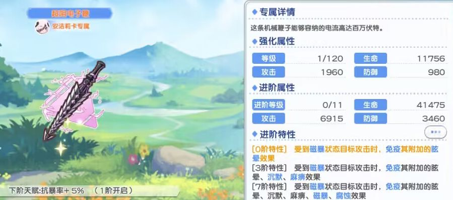五星觉醒就比较简单粗暴了,短短一句话:全体敌人本场战斗所受磁暴持续回合数+1
