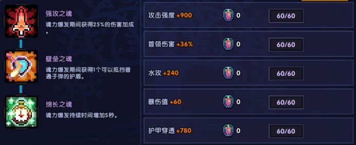 对于魂点不够用的同学,在满足穿透和暴击的前提下,各项属性平均分配点取,或者可根据自己面板来自己调整加点