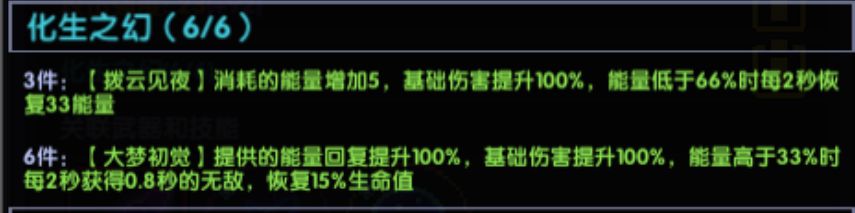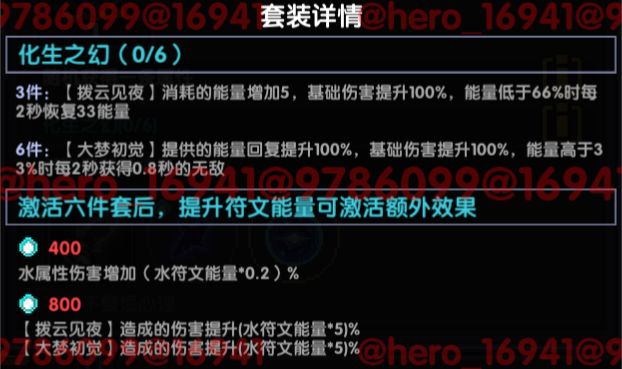 六件套:橙技能伤害与蓝量回复增加,并且每2s有0.8s无敌,覆盖率40%