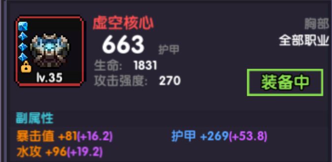 在boss大秘境中穿透暴击值都比较缺,所以心与徽章部位选择暴击值或者穿透更好