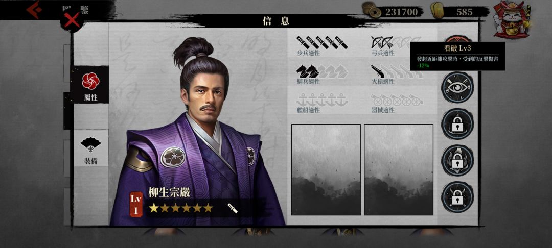 首先是步兵将领:通关游戏的新手教程会直接送玩家一星的丰臣秀吉,这个将领至少可以用到可以直接用到当前版本全部关卡通关,有点在于统帅高,解锁了皮肤之后还可以依靠免伤叠加有非常优秀的抗伤能力,属于传统的抗线步将,后期还有专属的四件套装,当前版本养这一个步兵将领基本上就够用了,如果出于个人喜好想养其他步将的话这里可以推荐上泉信纲和柳生宗茂这两个步将,这两个是属于比较强的输出型步将,但是说句实话步兵输出属于有点那啥了。