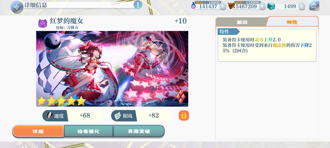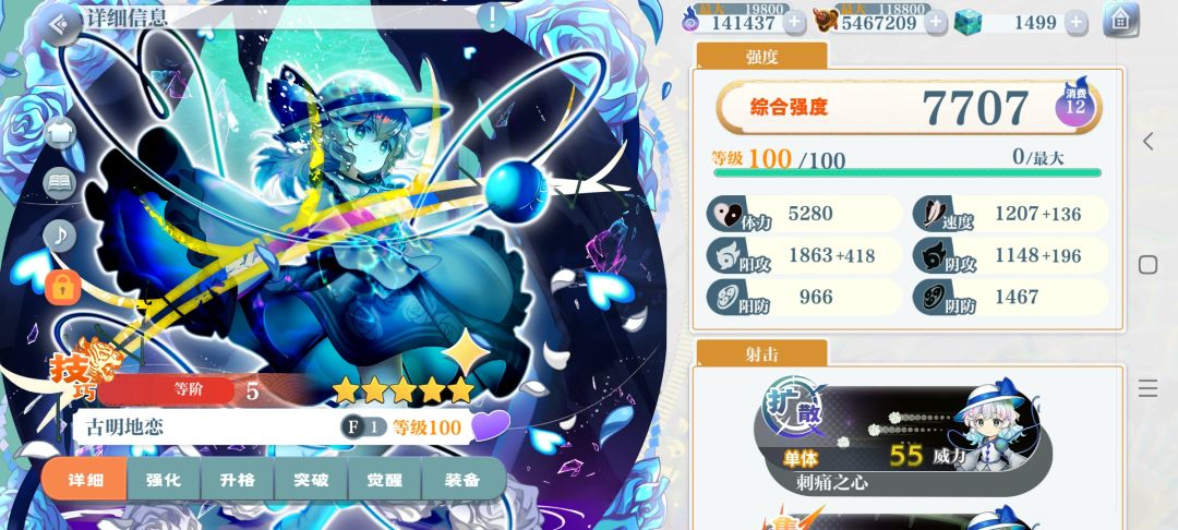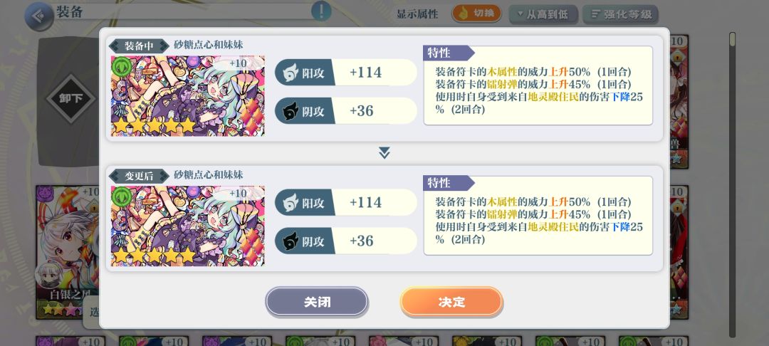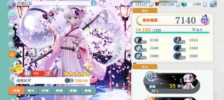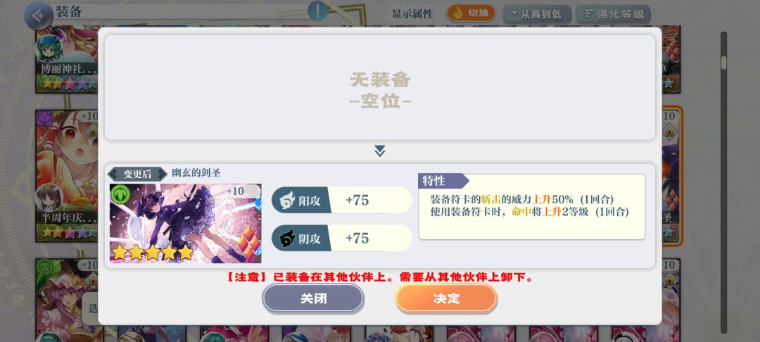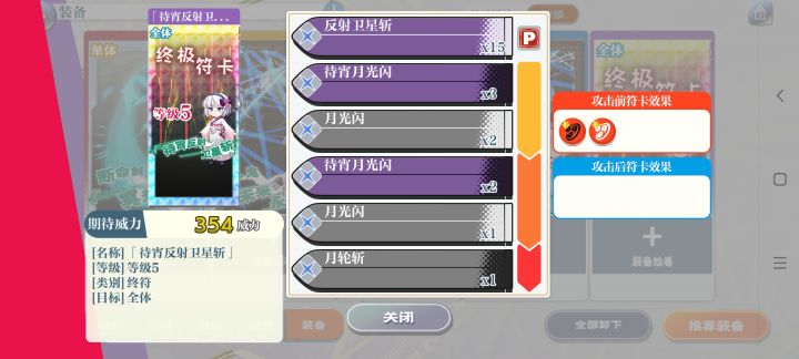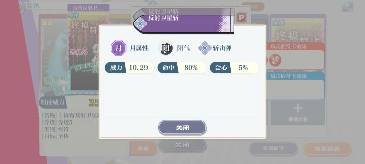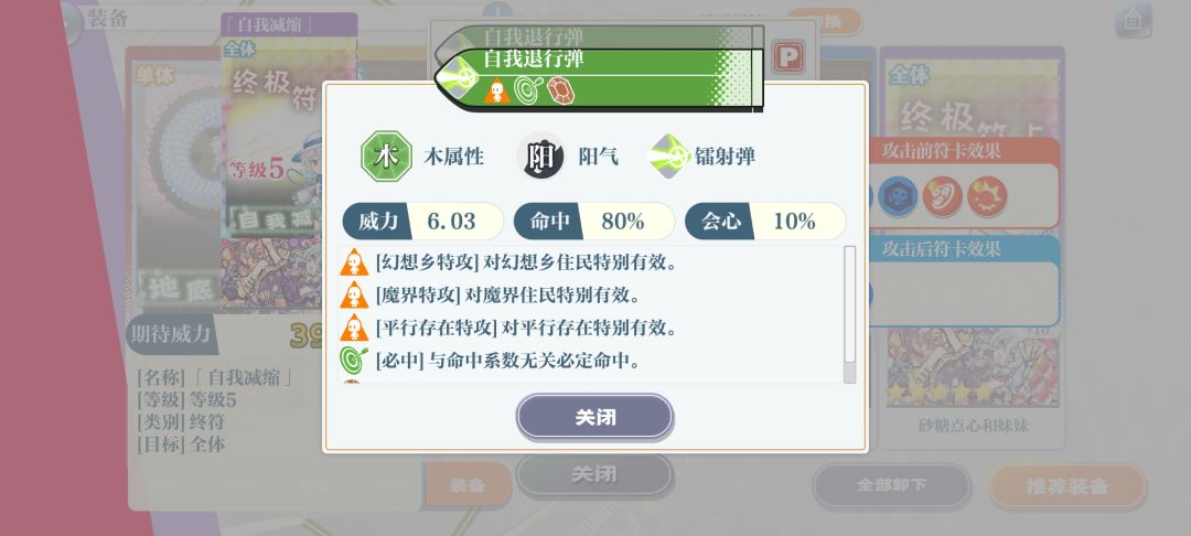首先可以看我们的新人之友魂魄妖梦,看上面图,点击符卡,看它是什么属性先不管阴或阳,大招符卡显示月属性斩击弹,我们主要的是先装配弹种,然后再看那个属性,像这个妖梦配剑圣一样。