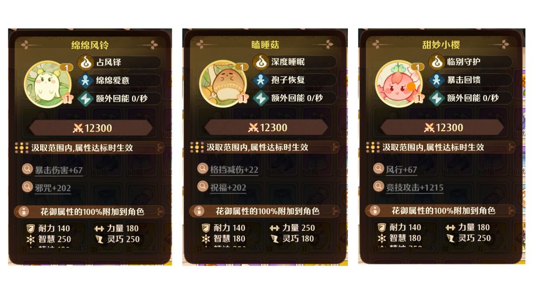 首先我们要先知道 一共有3个花御 瞌睡菇 绵绵风铃 甜妙小樱