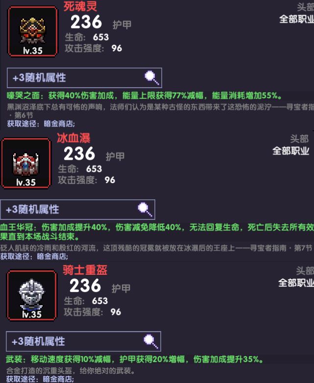 头盔方面可以选择骑士重盔、死魂灵、冰雪瀑,看你是要去打什么了,冰雪瀑就在打内桩的时候可以用用,骑士重盔和死魂灵根据自身最大能量决定、新手搞骑士重盔好一点,不会断蓝