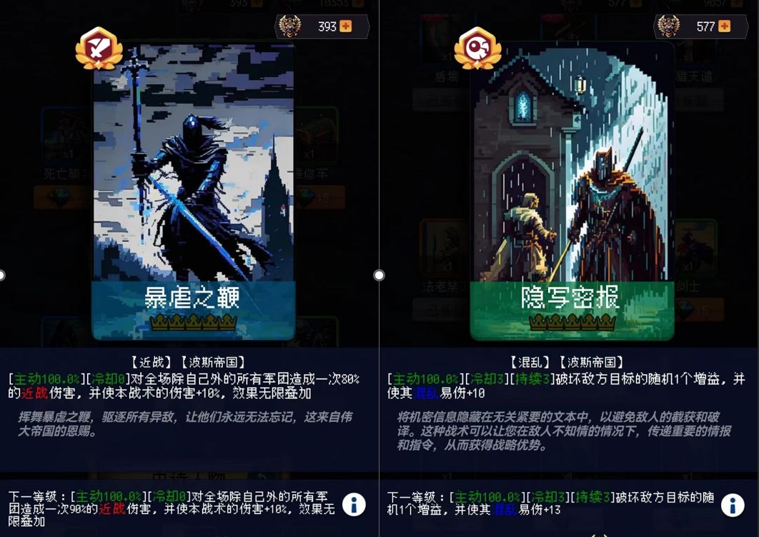 243/253/263年【维西尔】,【谈判】时,军团兵力+25、暴伤+10%