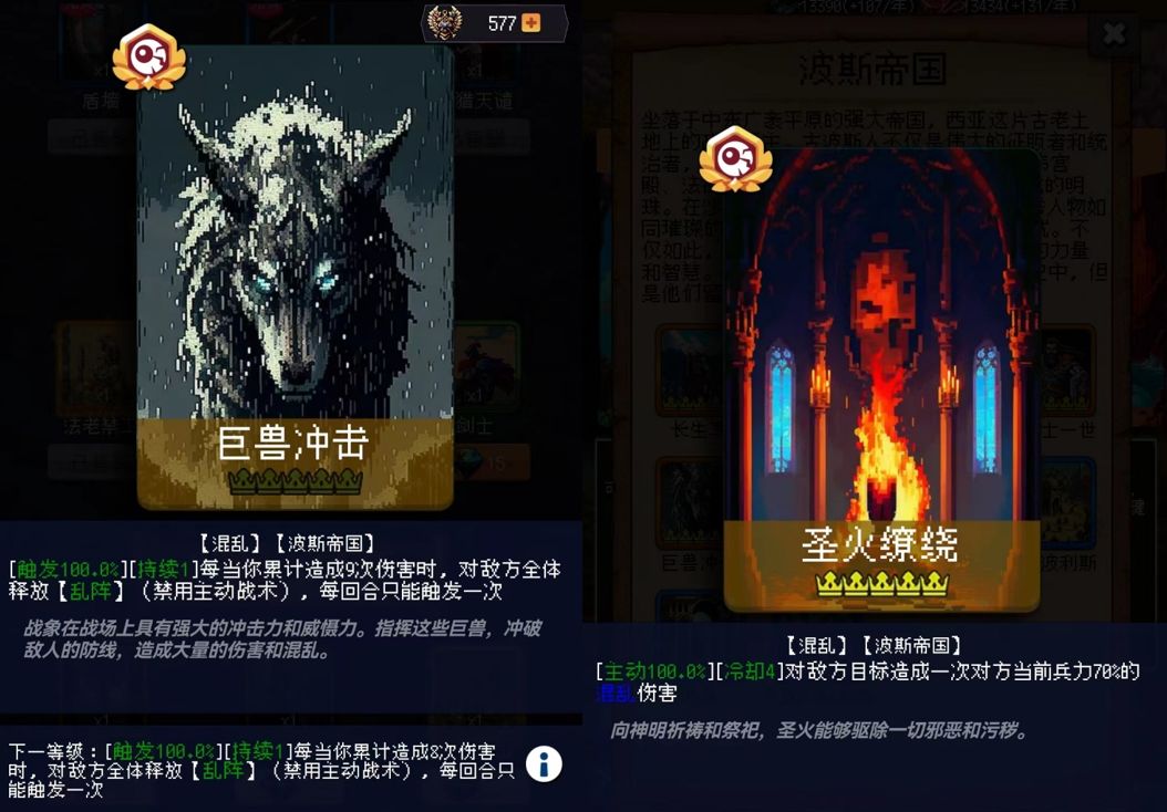 其中:【巨兽冲击】可以游戏内获得永久卡,302年~419【结盟波斯帝国】,需要声望同盟、宗教70。
