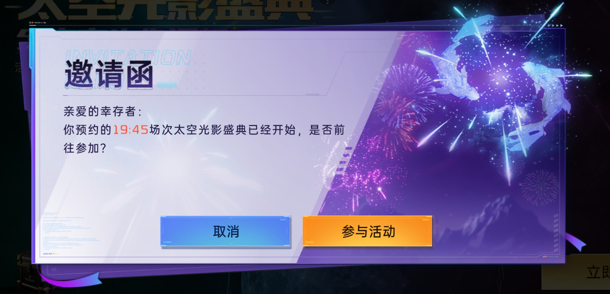 幸存者们可能比较好奇,太空光影盛典究竟是什么样呢?星球记者阿姨义不容辞!已经提前进入活动场景替大家打探打探~绝对不是阿姨想偷看哦~