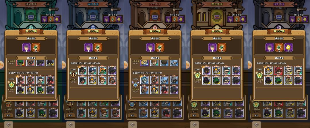 再说塔。每过5层塔会赠送5张普通至宝券,200层塔的契约加成无论是钻石或者攻击都很可观,所以冲塔也是中后期必须要做的事情。法师输出乏力、猎人仅有治愈流在火塔可以一战,所以这两个职业不再多说。天赋足够的情况下,使用光明绽放搭配对应克制属性的战士可以轻松冲到五个塔的三百层,以下各塔的终极搭配不一定完美,可以作为参考,期待各位不断研究出新玩法。