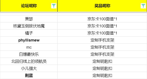 大家好,感谢大家积极的参与本次活动,现将活动中奖名单公布如下↓,没中奖的友友请不要气馁,多关注论坛最新活动公告,祝大家游戏愉快。