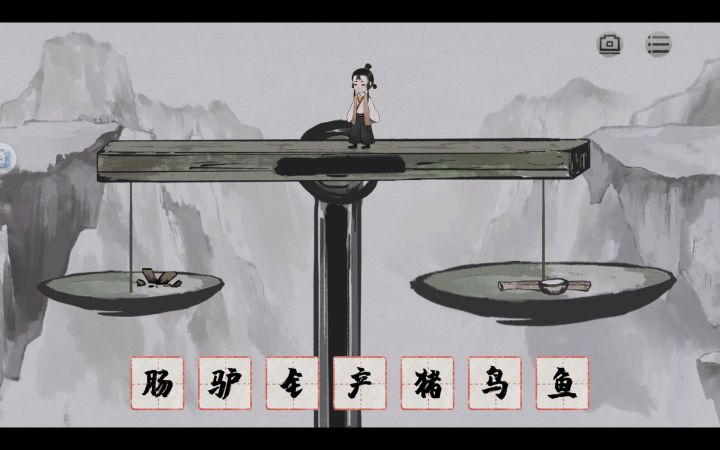 然后天平就平衡了,过桥后组字【钥】开门就行