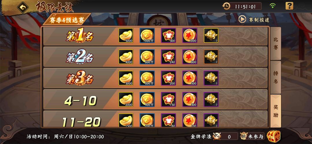 极限竞技预选赛采取月赛制,赛季内每周六及周日晚上18:00-22:00可参与竞技,开放时间更为灵活,周末夜晚开赛更能调动玩家的积极性。正所谓重赏之下必有勇夫,如今极限竞技赛奖励增加,更富激情!参与便有奖励,超高奖励和专属称号能者居之,而且本次势力战新增了周参与奖励,按照每周累计参与的最大次数领取奖励,参与次数越多奖励越丰厚。