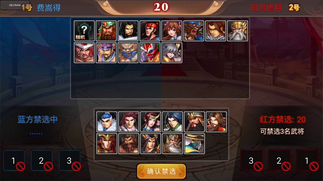 此番蜀国冠将悉数可选,但理论上可以禁选掉一半的冠将,或许想选出三员冠将上阵颇具难度,更多时候其中优秀的冠将大概率存活在“禁选”里,但总归有一两个冠将是您能灵活运用的强力武将。而且禁选时双方会有所斟酌,或许1P优先选将不禁选冠将的情况也大有可能,不过更多时候蜀国强势和不好对付的冠将都会被和谐掉!1P玩家具备优先选将权,建议选择可选阵容中最具优势的武将,2P玩家后选武将但同时可以连选两员武将,最好是根据敌方首发武将,尽量选择能抗衡和周旋的武将。接下来1P再选同样也是根据对方阵容,挑选能够克制对方或是自己熟练度较高的武将。