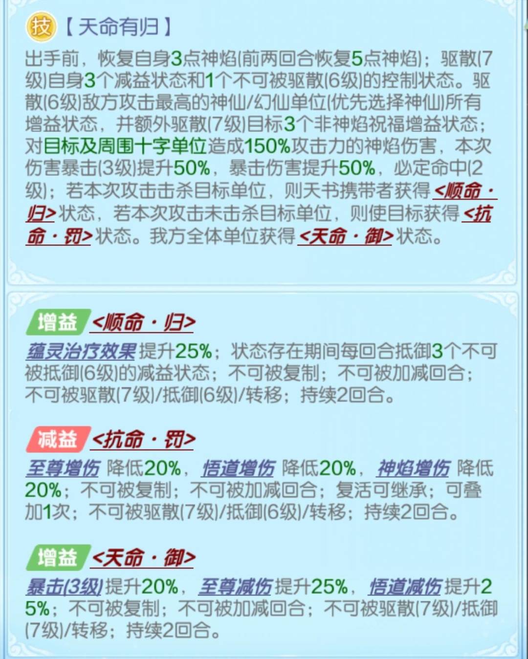 (1).阎罗:主要作用复活,给全体提供两个无限级无回合限制的增益。