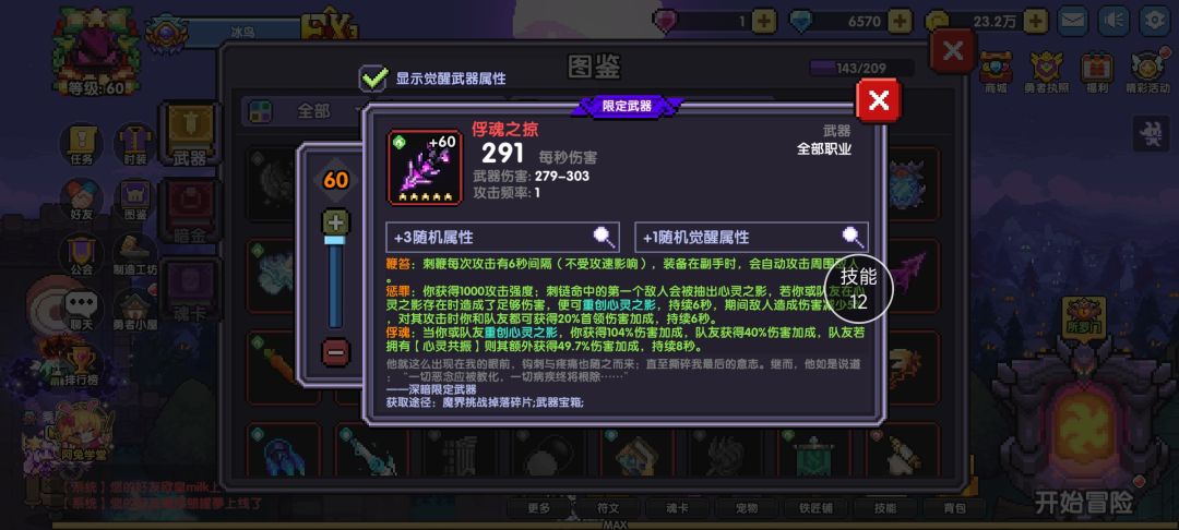 组队时提供36技伤和60普伤以及14%属攻增幅(队友携带木深暗),削BOSS700护甲和300元素抗性