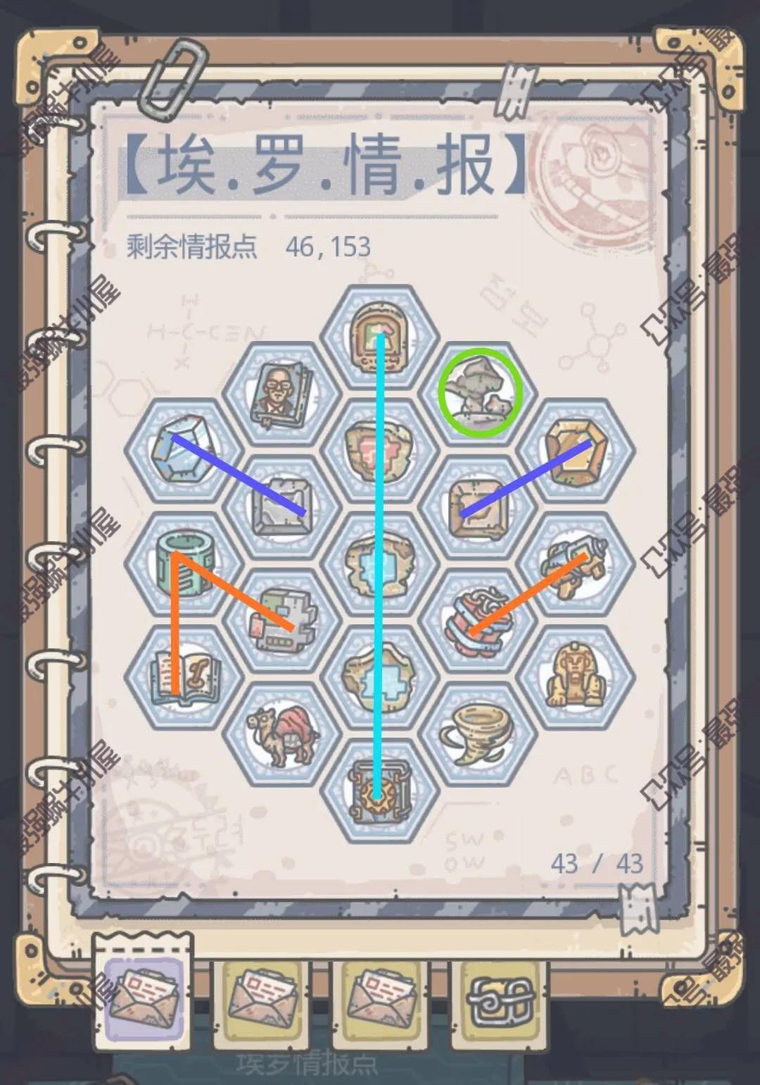 5.左侧剩余两个情报与卡片兑换有关,可以后续再点。右侧剩余两个为探索相关,最终100%完成需要。