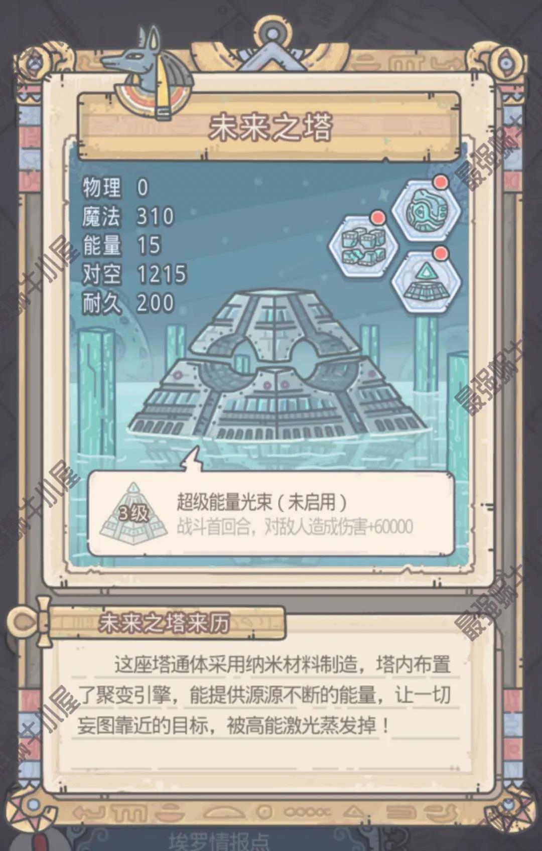 5.最上方为解锁过去之塔,最下方为击败过去地图4位使徒后可点击,解锁未来地图。剩余均为奖励情报,后续点满即可。