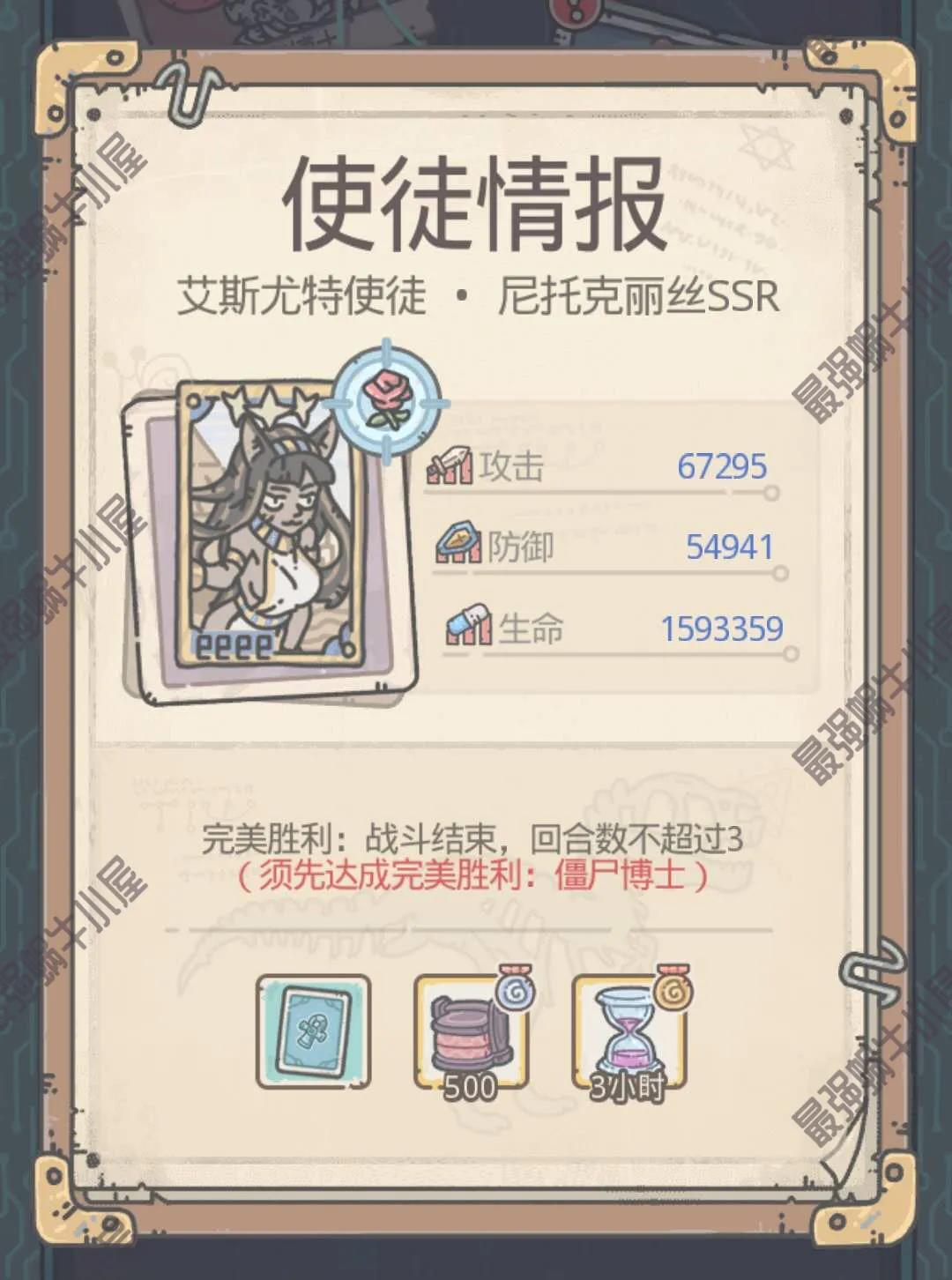注:不要看这些使徒攻防双高,只要能开启未来之塔,后续都是一招秒。前期只需要强化好现代之塔即可,后期开启未来之塔后只需猛挂未来地图即可。首回合造成180万伤害,这些属性真的不够看。