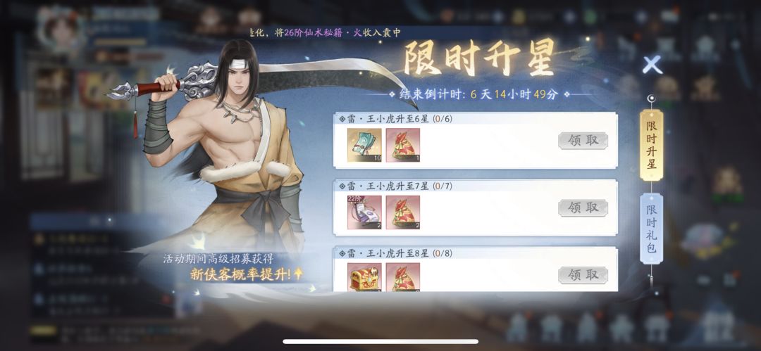 雷小虎属于开服后新增的稀有角色,部分服务器是有升星活动的,出现活动的规则如下:公测以来满64天的服务器就会出现升星活动,升星活动主要是赠送22阶仙术书、魂器。其实不难理解,没有满64天,赠送22阶段仙术书容易打乱游戏前期发展节奏,直接赠送魂器也不利于引导氪金,这点其实换位思考以下还是很合理的。