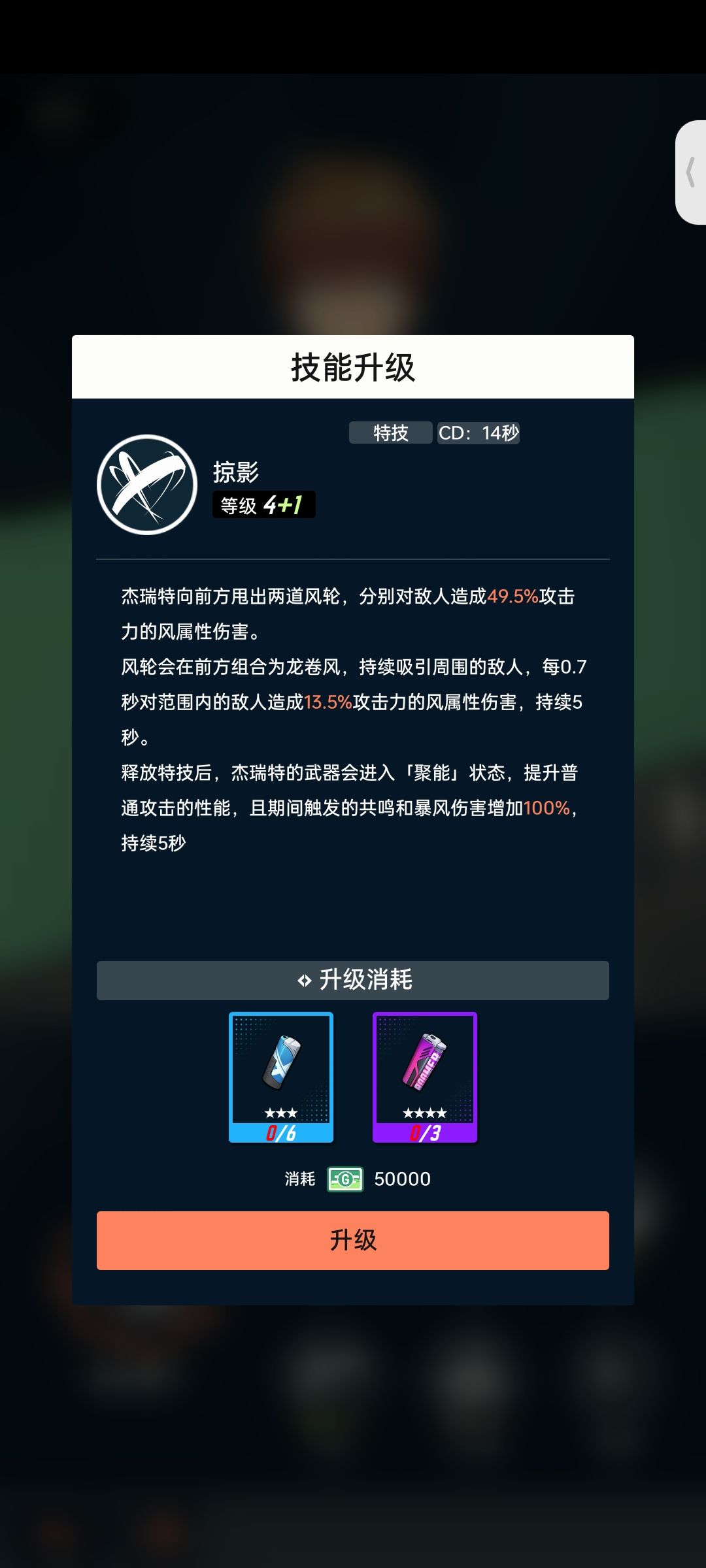 技能升级到你能获得的材料前一个。如图,我能获得紫色,所以我升级到需要消耗紫色的我就不升了,因为越后面紫色掉落越高。