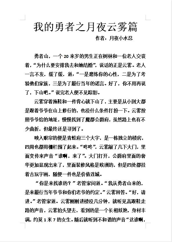 我的勇者同人文之月夜云雾篇