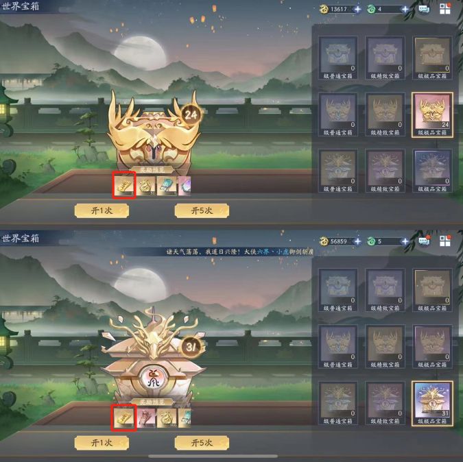 a、世界宝箱:中级极品、高级精致、高级极品宝箱